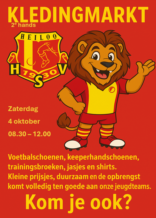 Op zaterdag 4 oktober organiseren we in de kantine van HSV een 2e hands kledingmarkt. Van 08.30 tot 12.00 uur ben je van harte welkom om langs te komen en voordelig voetbalspullen op de kop te tikken.