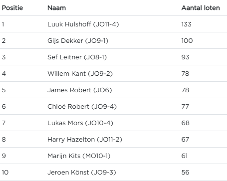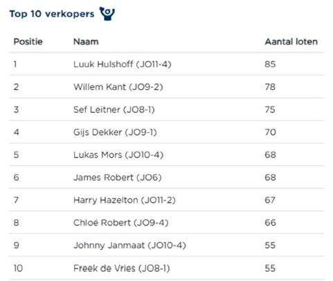 De tien kinderen die uiteindelijk de meeste loten hebben verkocht krijgen een mooie prijs.