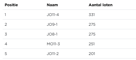 En voor de echte toppers (nrs 1 t/m10) zijn er nog extra prijzen. Dit is nu de stand: